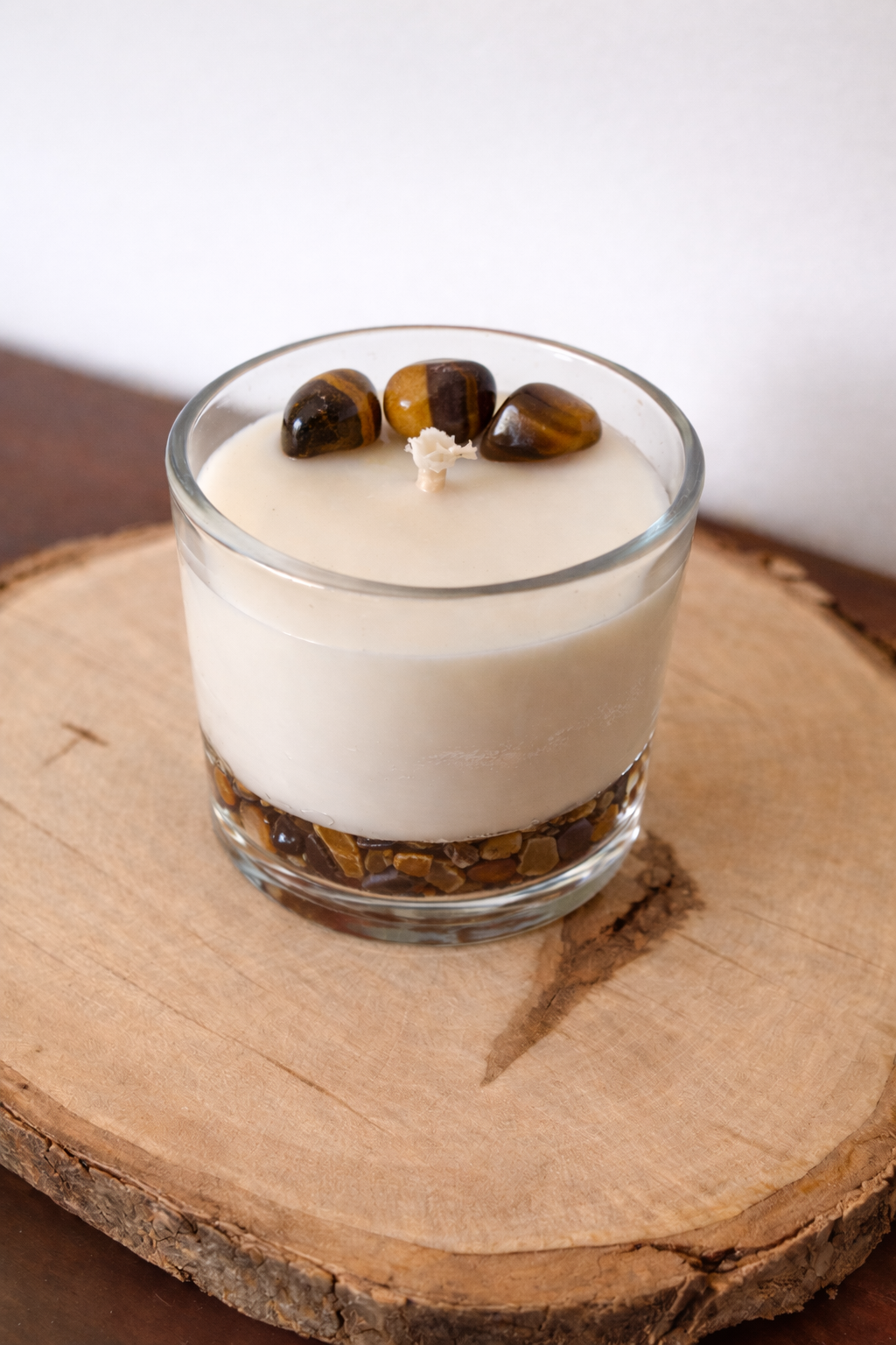 O olho de tigre é uma pedra de proteção, coragem e força interior. Conhecida por estimular a autoconfiança e o foco, auxilia na tomada de decisões e no equilíbrio emocional. Suas tonalidades douradas e amarronzadas remetem à energia da terra e do sol, trazendo estabilidade, prosperidade e segurança ao ambiente.